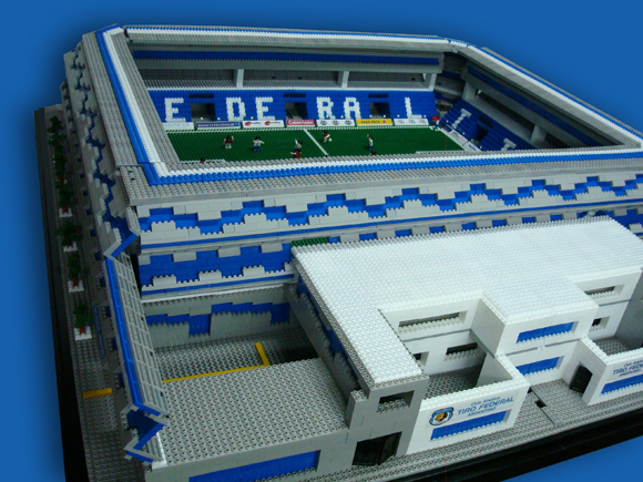 Para la presentación del nuevo proyecto del estadio de Tiro Federal de Rosario se realizo un modelo en escala en base a planos y renders provistos por el estudio de arquitectura encargado del diseño. Su construcción se realizo con 12500 piezas en una medida 140 x 140 x 30 cm de altura, que es hasta hoy la maqueta más grande construida con Rasti. Este desarrollo también contemplo la construcción del escudo del club con una dimensión de 140 x 120 cm. |