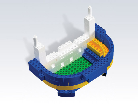 En base a requerimientos de estética y de costos se generaron modelos para la nueva línea, tomando como referencia los iconos más representativos de club Boca Juniors. Se diseño un estadio de 1560 piezas como producto principal de la línea acompañado de un escudo y una mini bombonera. |