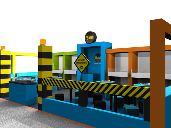 Para el diseño de este stand se hizo hincapié en una estética que comunique los conceptos de creatividad/construcción y se creó un espacio para exhibición de los nuevos modelos y el agregado de mesas para juego. Se genero un modelo 3D del stand para verificar los espacios y áreas de construcción requeridos.