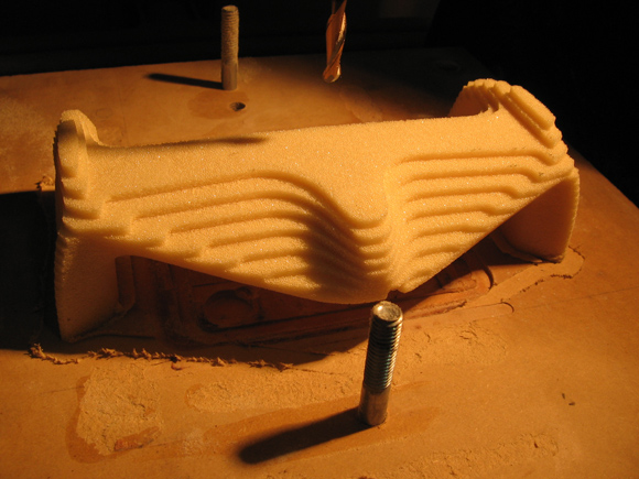Diseño de un truck para montaje de ruedas de tabla de street board. El producto debía reunir características formales y estéticas emparentadas con las tablas a utilizar y su morfología responder a funciones designadas por el uso de la tabla, generando áreas de apoyo, de rozamiento, refuerzos y ángulos específicos para maniobras acrobáticas puntuales. Se realizo un modelo en CNC para su posterior producción en fundición de aluminio.